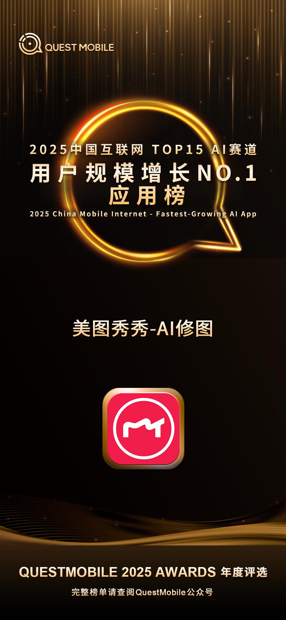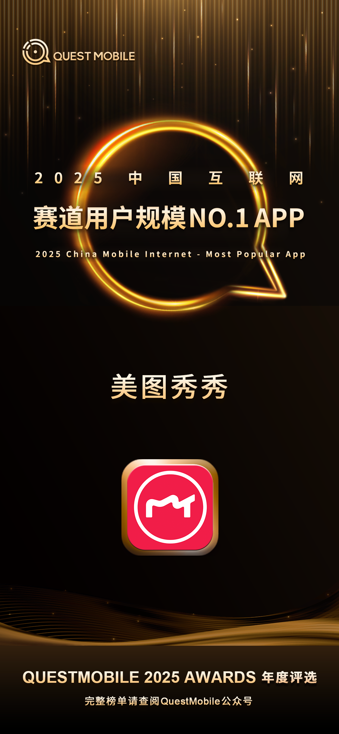 2026-01-27enhancement sector, with the Meitu app receiving this honor for the 10th consecutive year. Since QuestMobile began publishing its rankings in 2016, Meitu has consistently ranked first by user scale in China's internet photo enhancement sector.